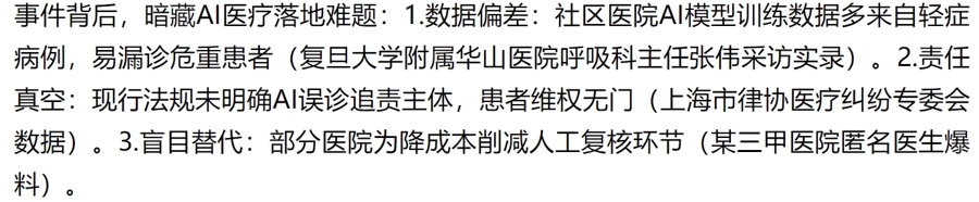所以,网友不要轻信“AI医生误诊”消息,而应客观看待“AI+医疗”。