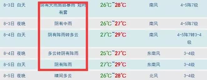 4日,阴有阵雨或雷阵雨转多云,局地有短时强降雨,南风短时北风4-5级阵风7级转3-4级,全市最低气温24-25℃,全市最高气温29℃左右。
