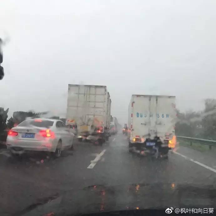 @枫叶和向日葵 :胶州湾高速河套段,暴雨、堵车