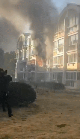 视频中的着火情况发生于芦潮港一小区内