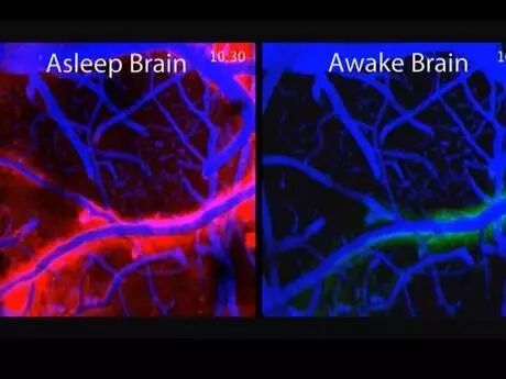 那么,这些神经元为什么要这样做呢?如果昨天学到的知识睡一觉就忘了,那岂不是白学了? 威斯康星大学麦迪逊分校的神经学家 Chiara Cirelli 告诉我们,当我们醒着的时候,我们的大脑在不断地学习和适应环境,具体表现就是神经元之间拉起了手——神经元间形成了突触,或者手拉得更紧了——突触增强。 不过就像你不能和全世界的人交朋友一样,每个神经元不可能和所有的神经元做朋友(人的脑子里大约有800多亿神经元,比地球上的人口数量多多了),你脑子里的突触并不能无限制地生长,在某个时候,神经元觉得自己的“朋友圈”够大了、饱和了。 清醒时(右)变粗,睡眠时(左)缩水的神经元 图片来源:Xie, Lulu, et al. "Sleep drives metabolite clearance from the adult brain." science 342.6156 (2013): 373-377. 睡眠,就是神经元清算”朋友圈”,看看自己到底和谁想做朋友的时刻。Cirelli 和同事经过十几年的研究发现,睡觉的时候神经元的部分突触会归零,大多数突触都会缩小20%。 经过这一番清算,大脑释放出了宝贵的记忆空间,就好像计算机内存被清理过一样。 但是,并不是神经元间所有的友谊在经过一晚后都会缩水。在大脑中,大约有20%的突触够大,也就是说神经元间的友情够牢固,它们并不会被“睡没了”,这些友谊中往往承载着重要的信息,比如第一口蛋糕的滋味等等。 那些不太重要的友谊,也就是不重要的记忆可能不会在一晚后被完全删除,但是的确会被越睡越少。 当然了,大脑除了能够清理神经元“朋友圈”、删除没用的突触以外,也能巩固一些神经元之间的友谊,让你形成一些长期的记忆,这也是睡眠的经典功能之一。 还有科学家提出,睡眠可以打扫你的大脑,消除自由基一类的废物,为你的大脑补充能量——糖元。睡眠的重要作用还在不断地被发现。