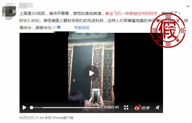 视频配文称:“上面是5G视频,请点开看看,感觉如身临其境,像坐飞机一样穿越空间和时间,美妙极了……”
