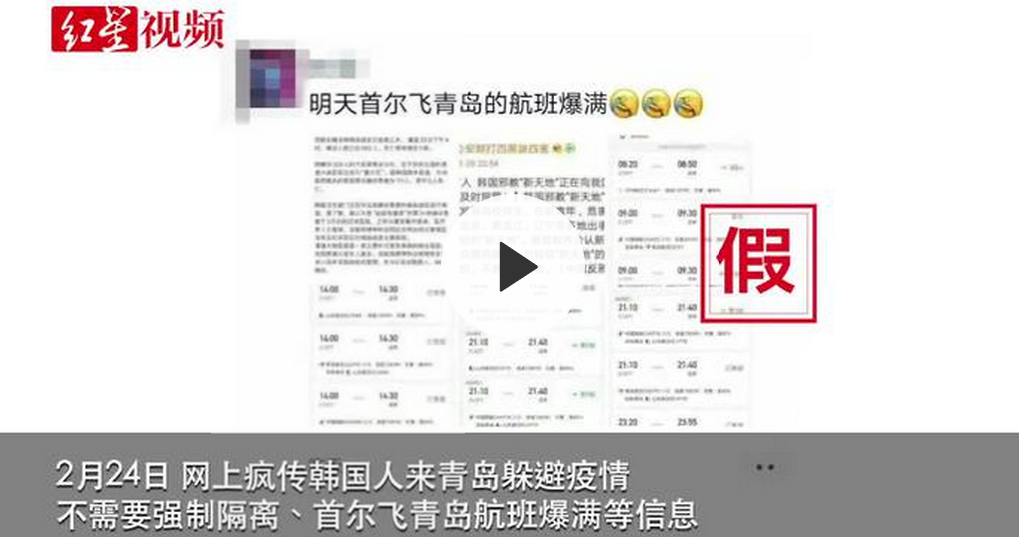 当前的位置>>谣言终结>>韩国人来华躲避疫情致飞往青岛航班爆满?官方回应